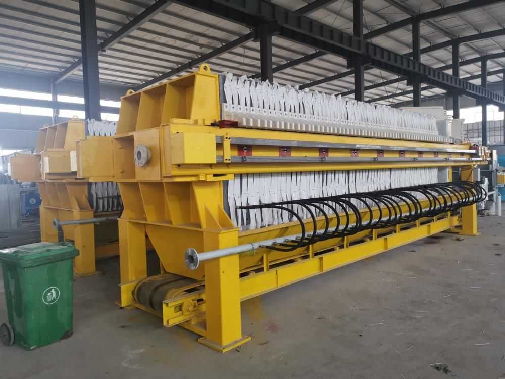 全自動廂式壓濾機與普通廂式壓濾機的不同之處在于多了自動拉板系統,自動接液翻板,自動清洗濾布等系統。使設備操作更加智能化自動化。整機結構設計科學合理,機械強度高、結構穩固、經久耐用并且便于操作和維護。